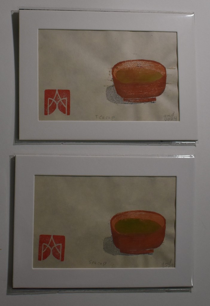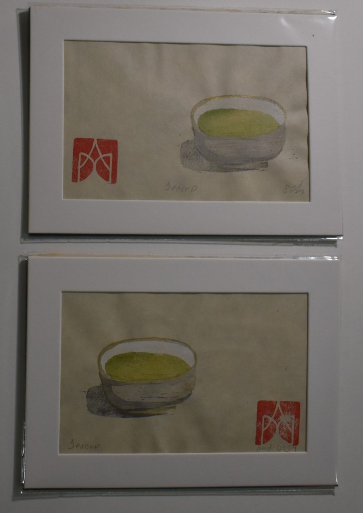 This teacup was the first mokuhanga blocks I made independently. Whenever I want to explore a new paper or ink, I return to them. They are the comfort familiarity of a warm cup of tea. They offer the safety of home as I journey in the freedom of new places.